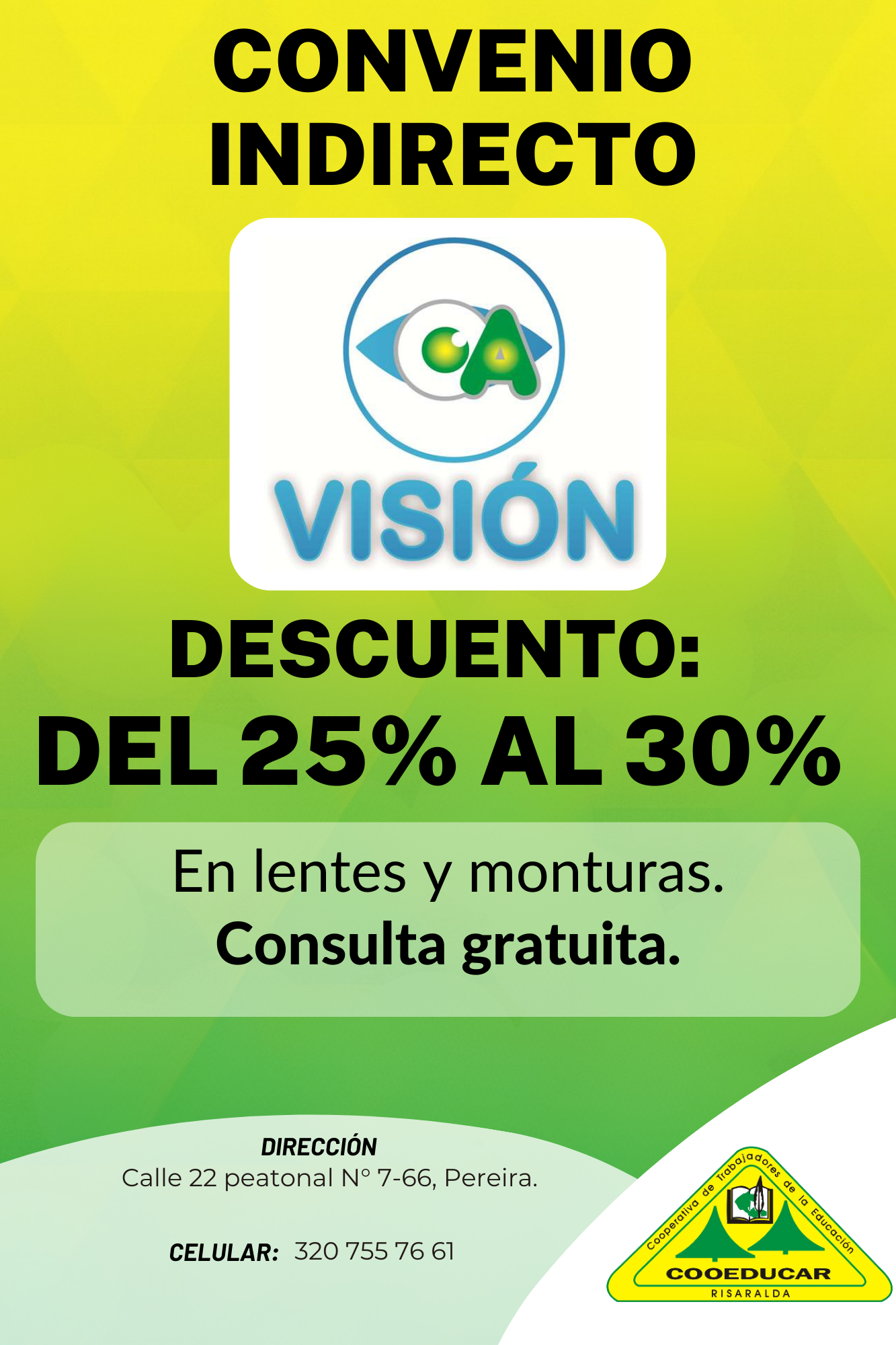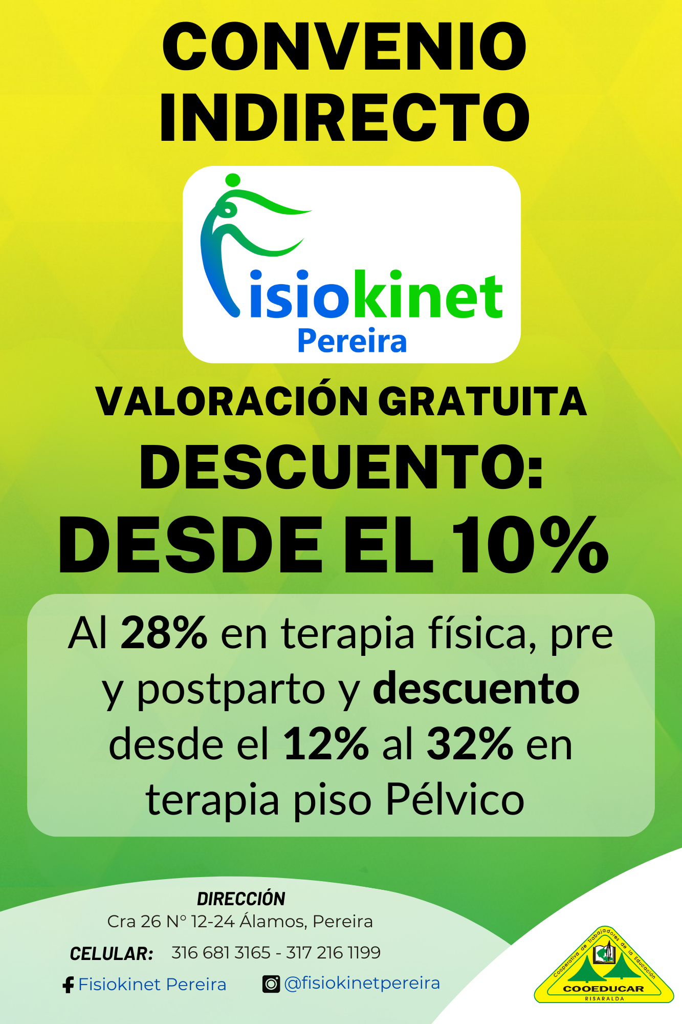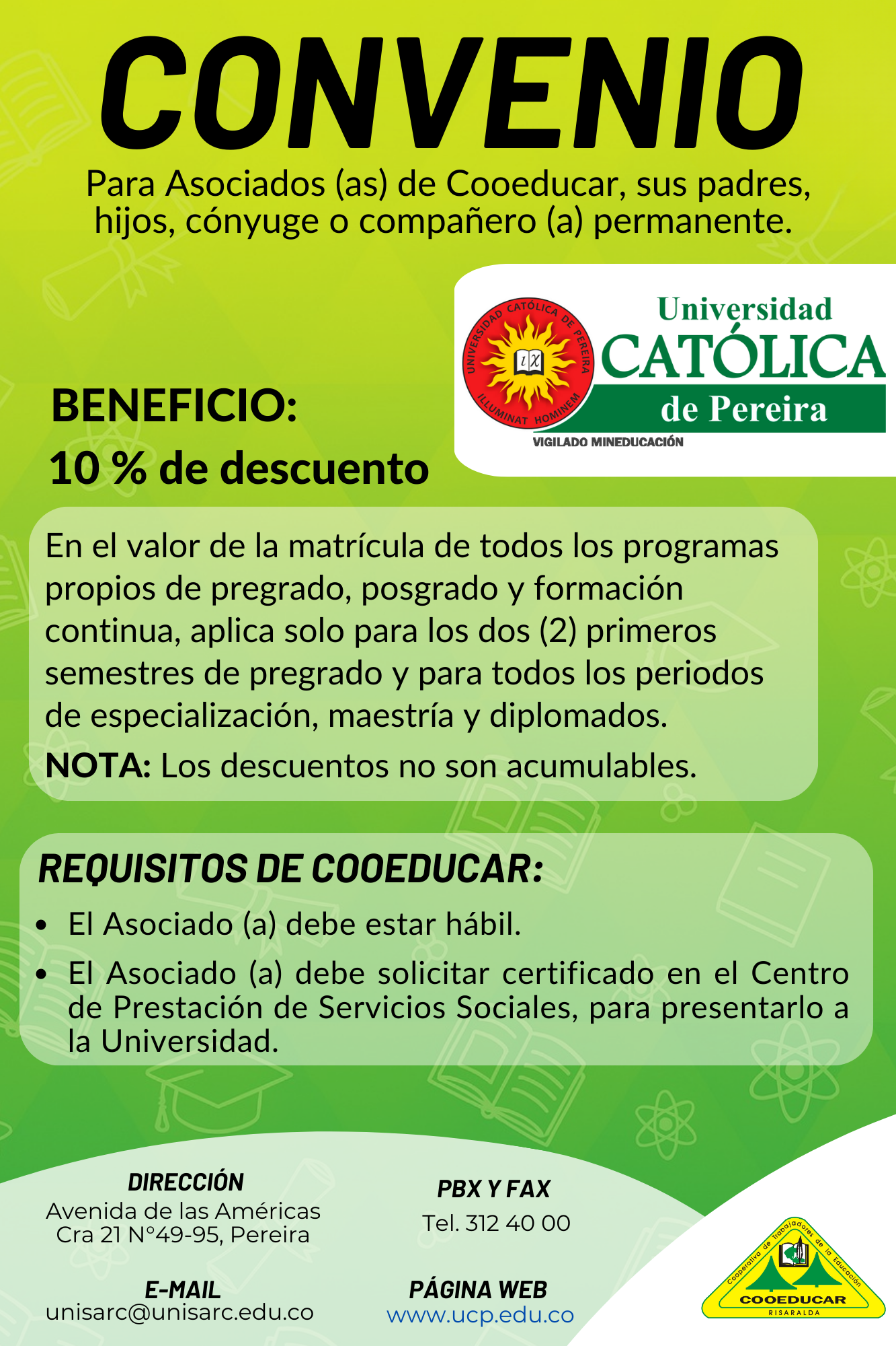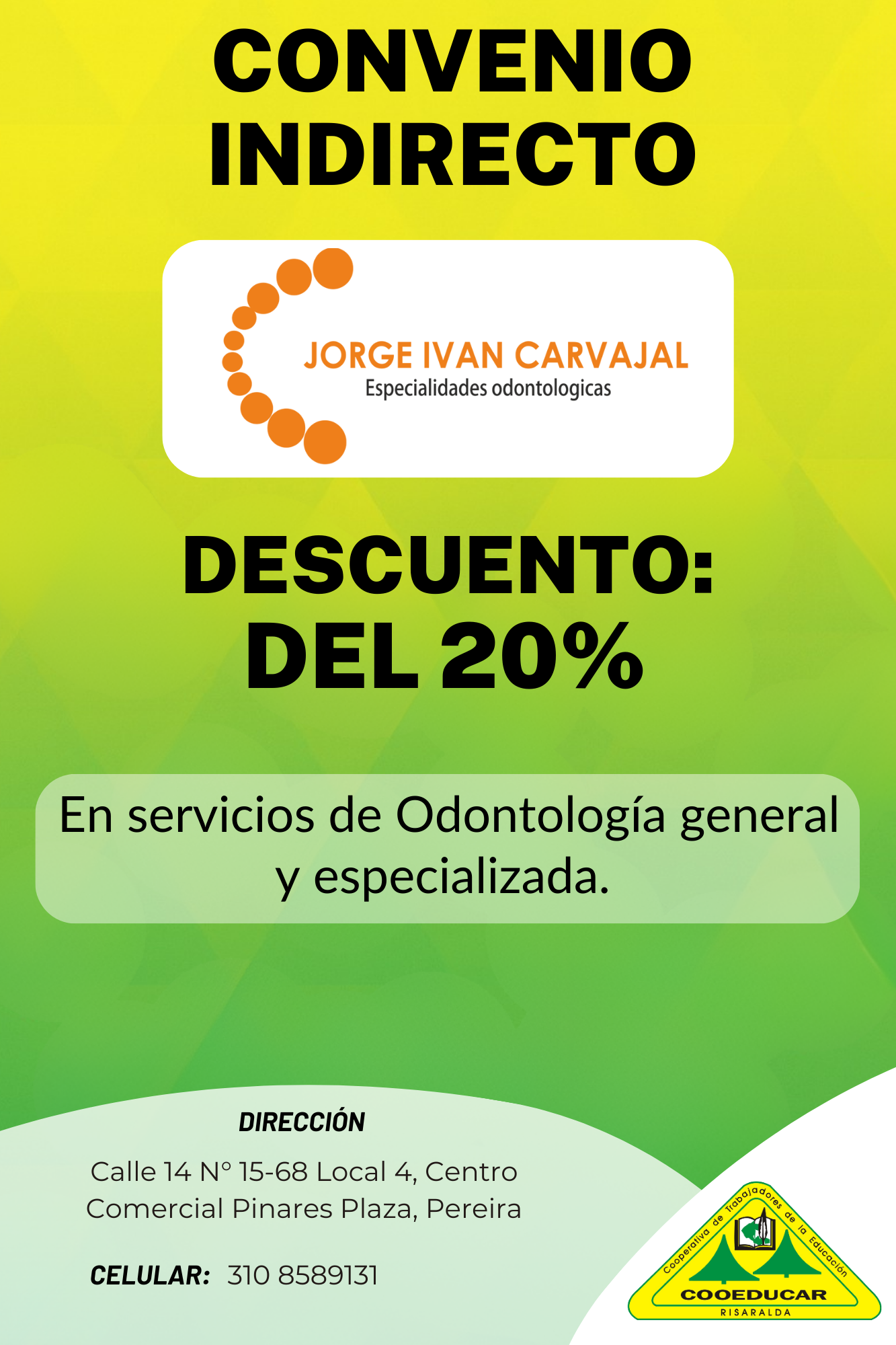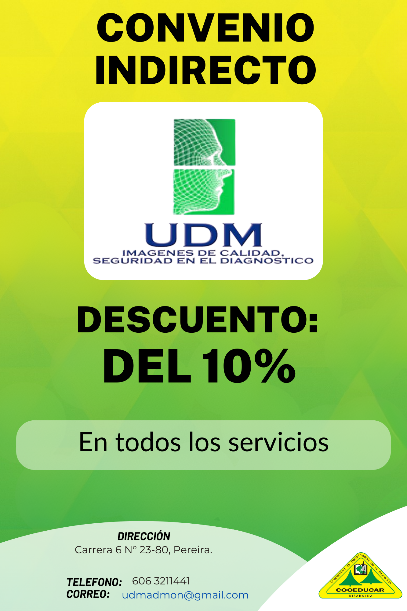 Para mayor información sobre los convenios que COOEDUCAR tiene para los asociados favor acercarse a las oficina de Servicios Sociales Cra 5 # 22-42.
