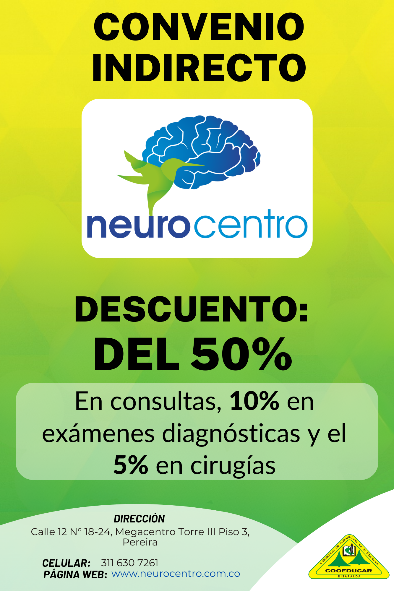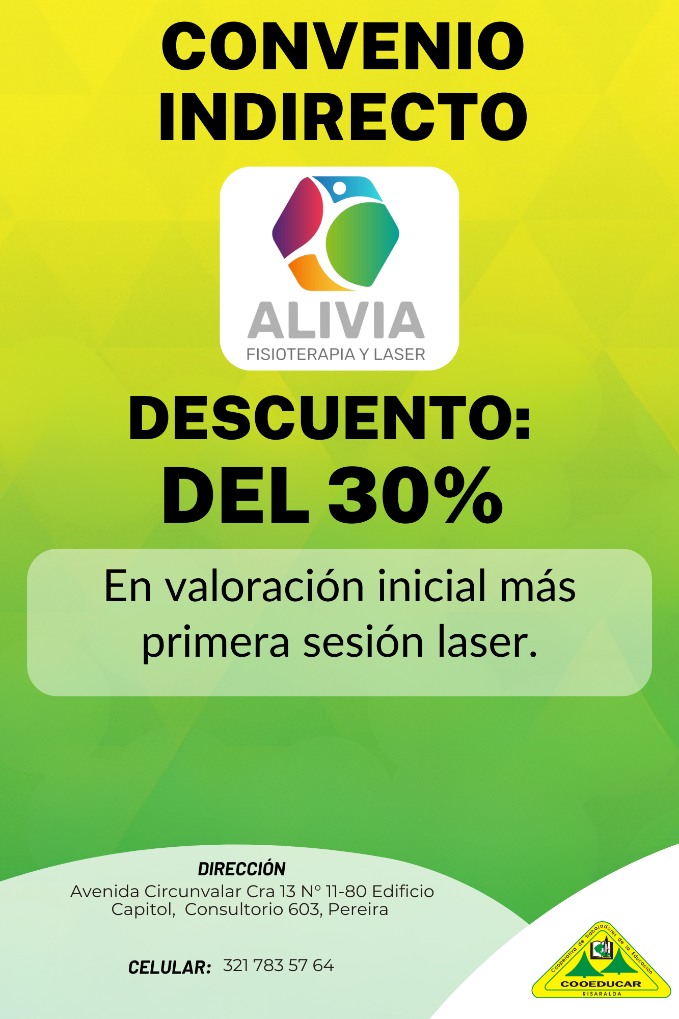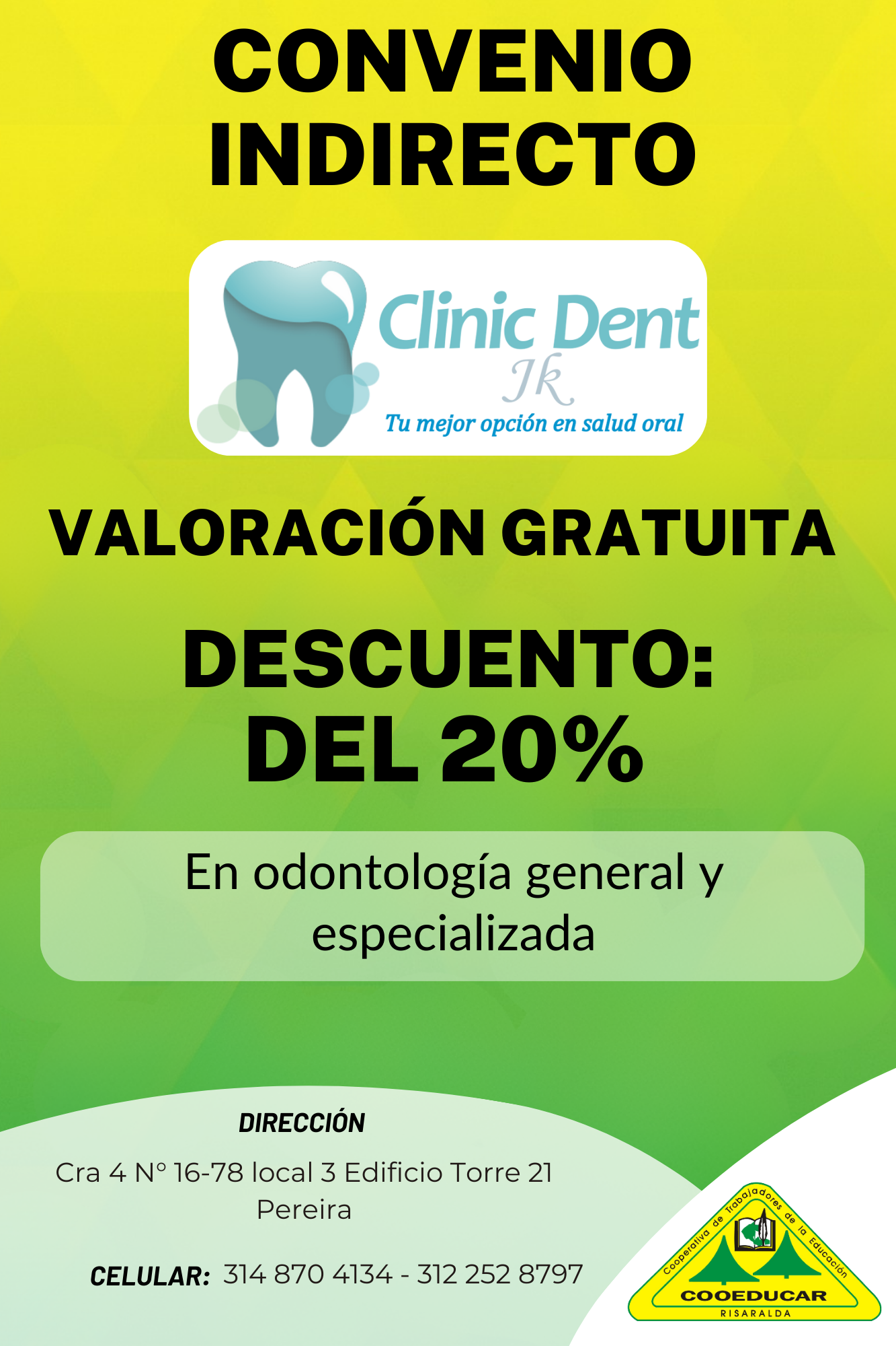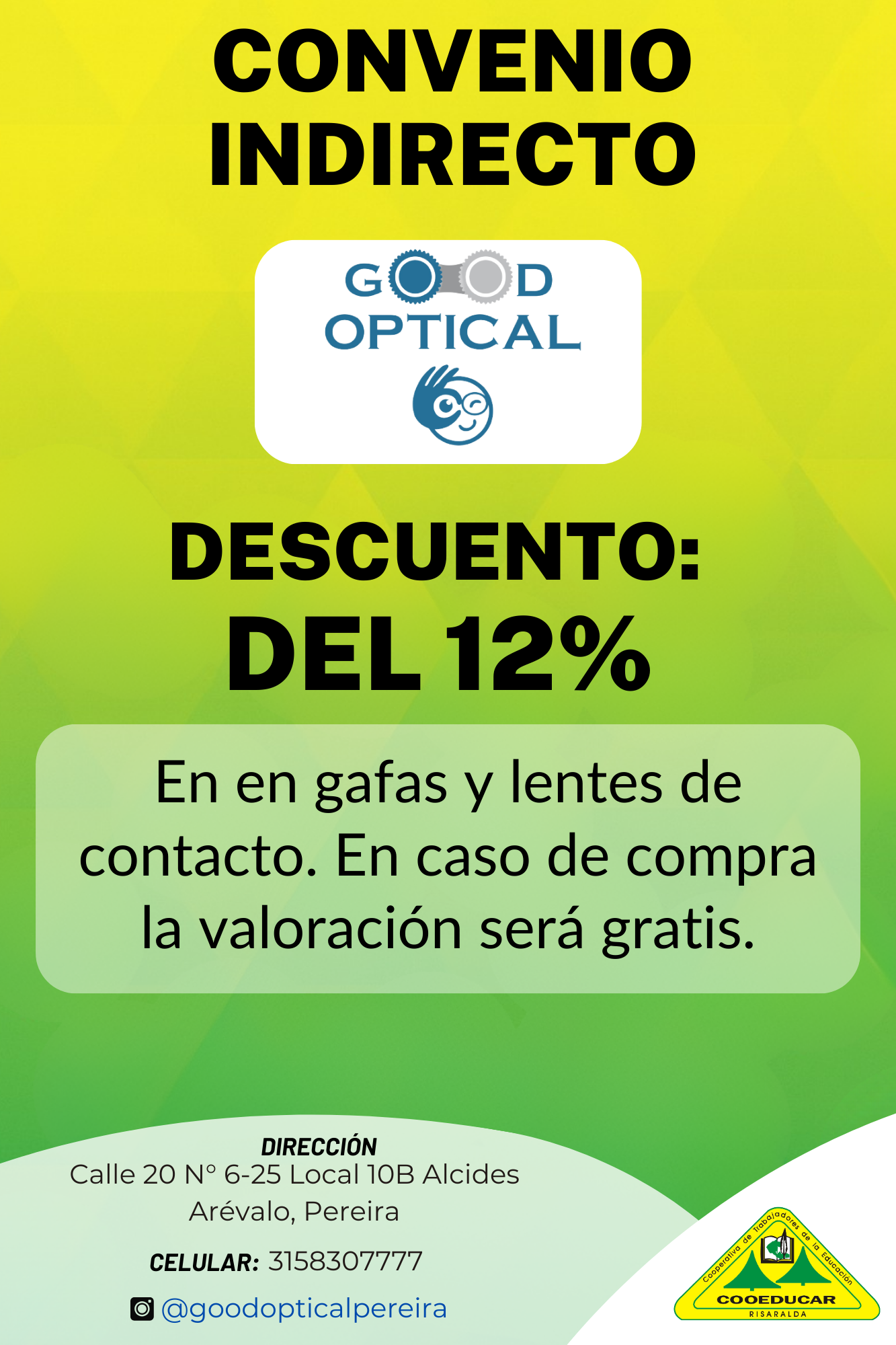 Para mayor información sobre los convenios que COOEDUCAR tiene para los asociados favor acercarse a las oficina de Servicios Sociales Cra 5 # 22-42.