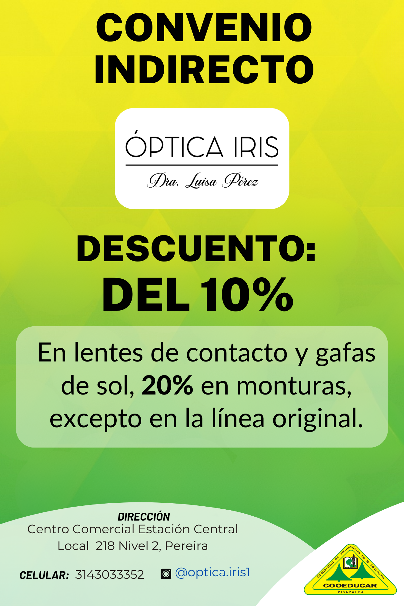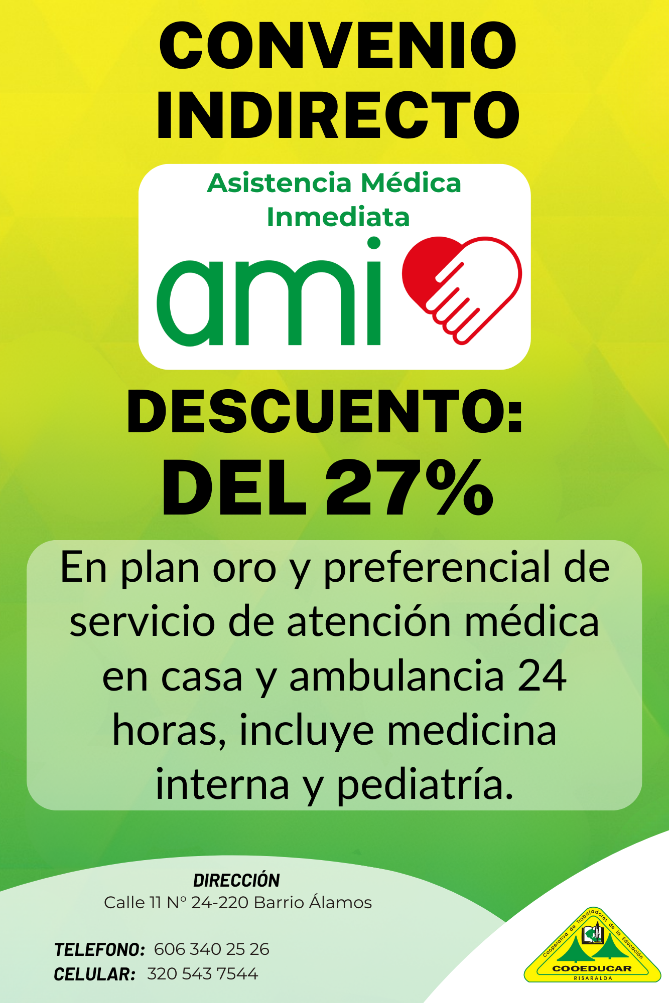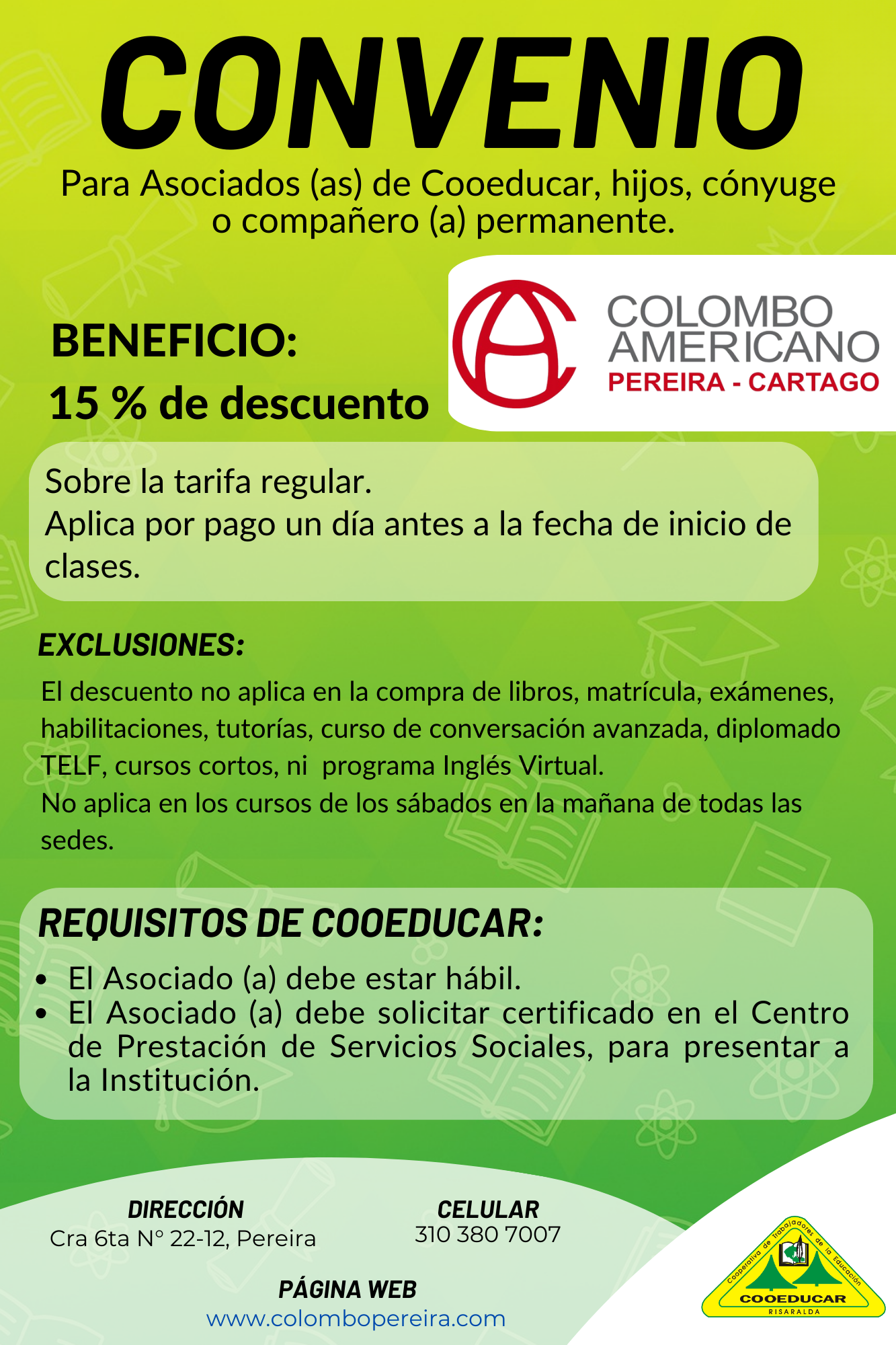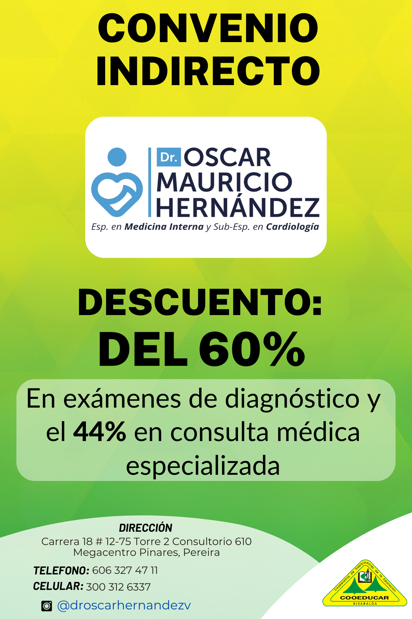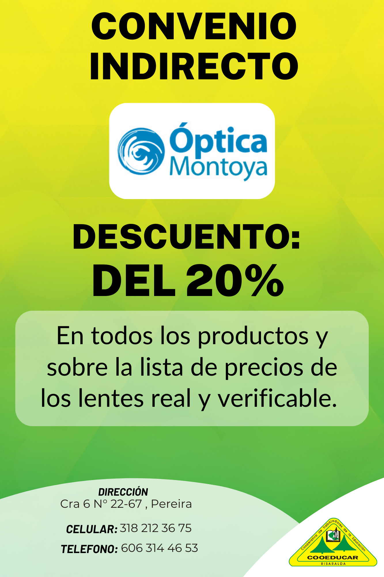 Para mayor información sobre los convenios que COOEDUCAR tiene para los asociados favor acercarse a las oficina de Servicios Sociales Cra 5 # 22-42.