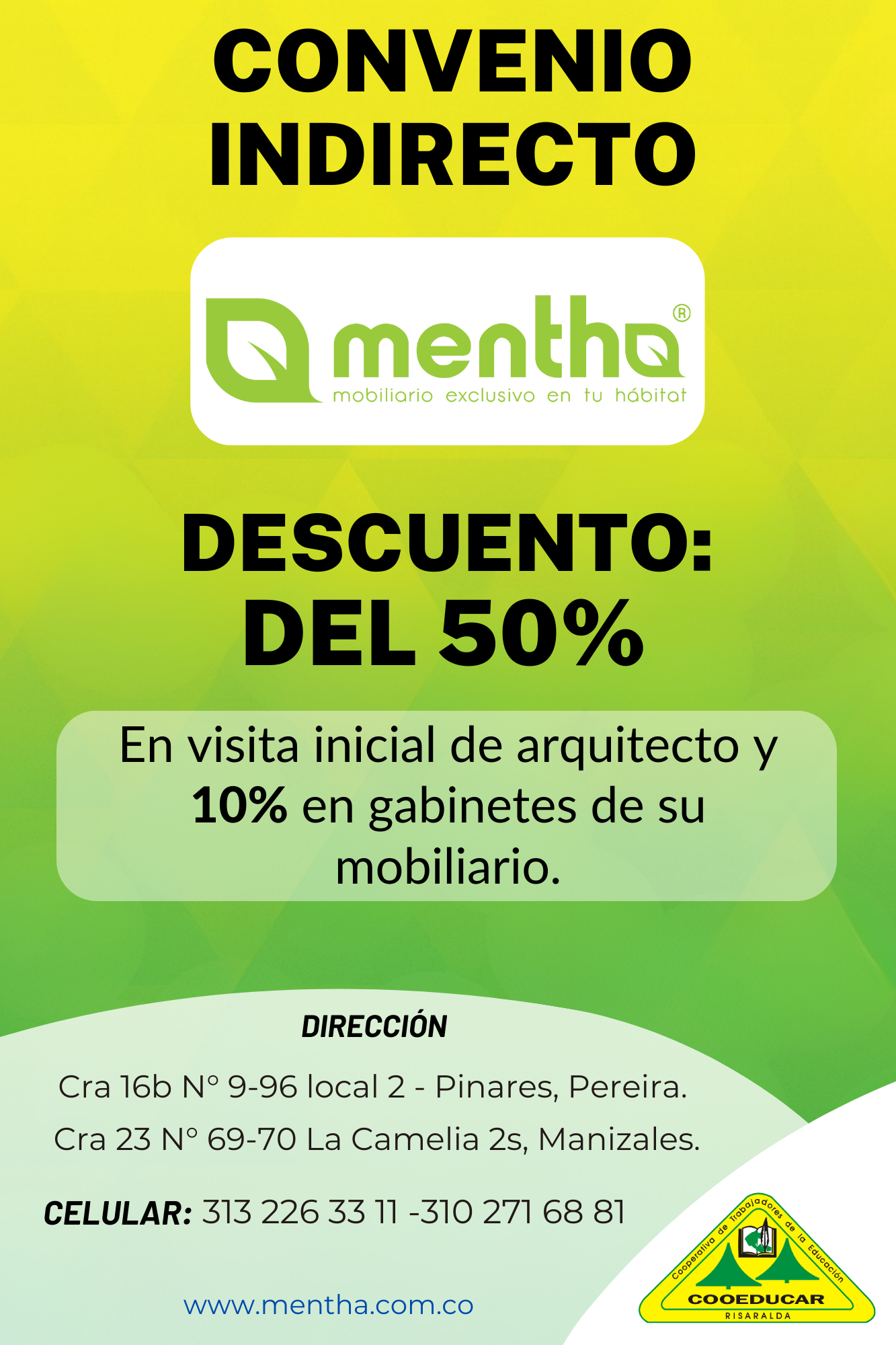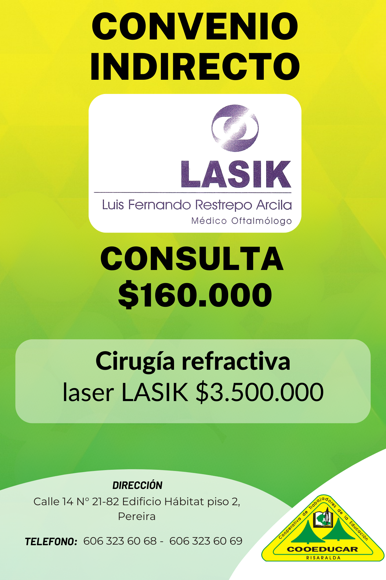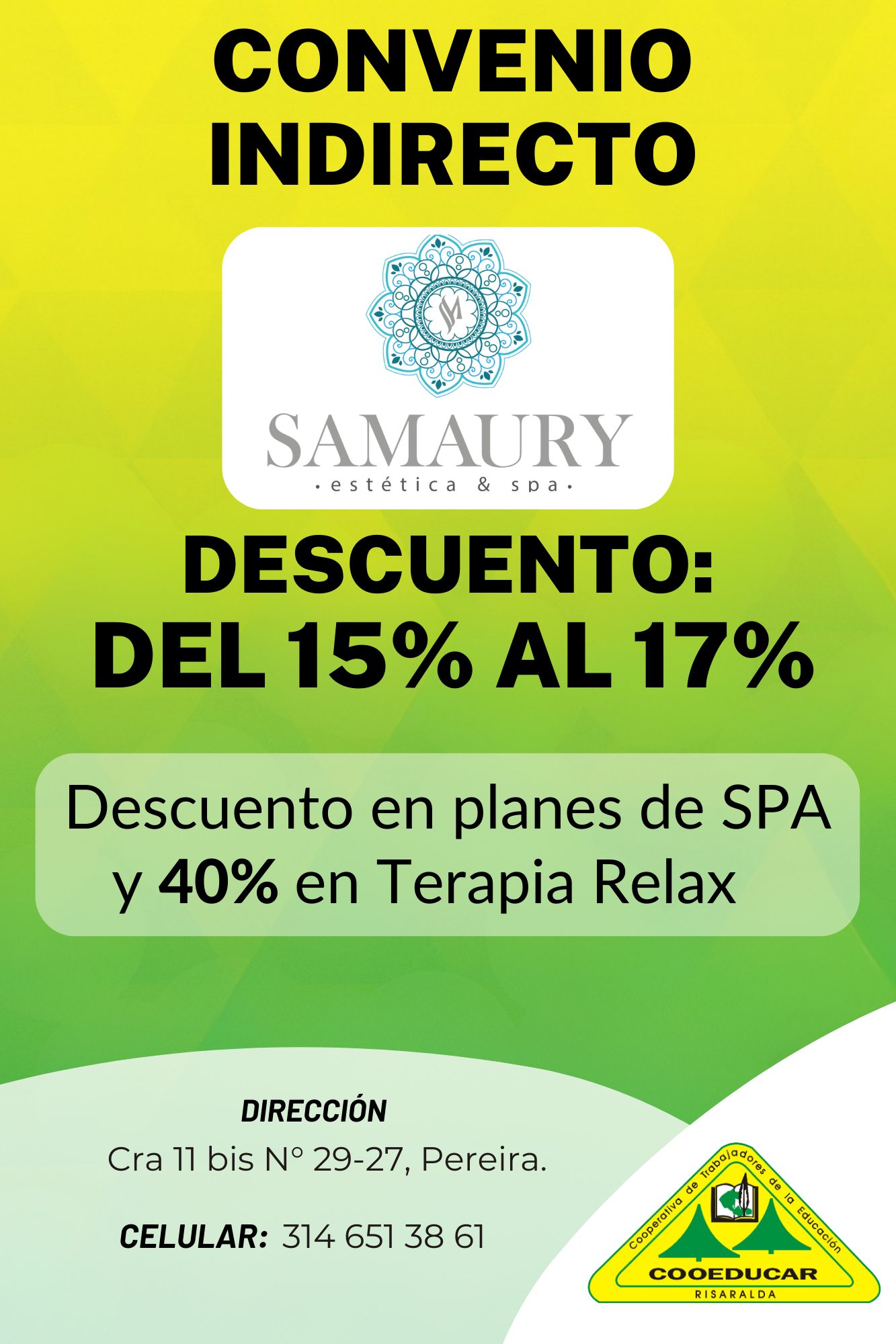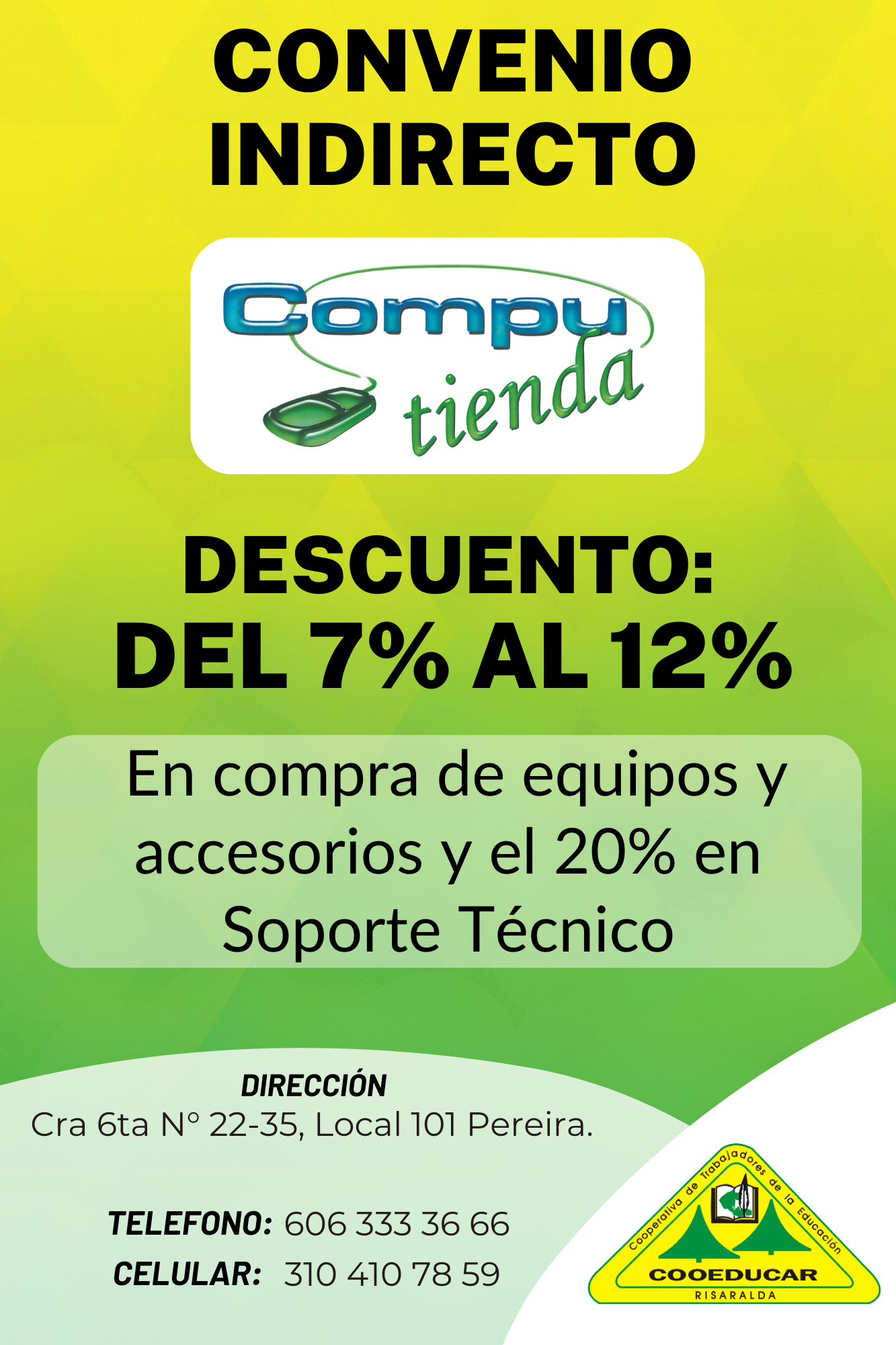 Para mayor información sobre los convenios que COOEDUCAR tiene para los asociados favor acercarse a las oficina de Servicios Sociales Cra 5 # 22-42.