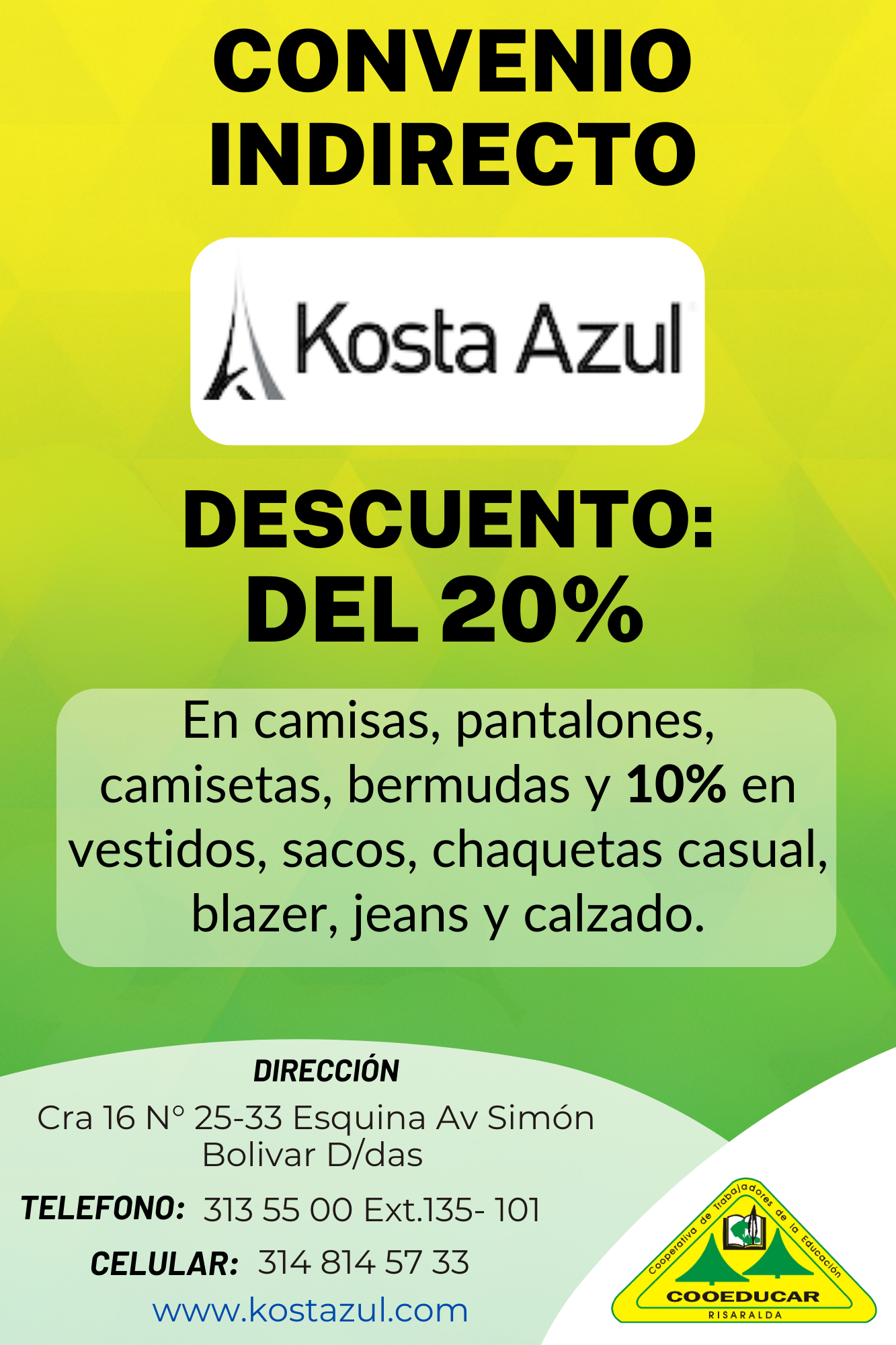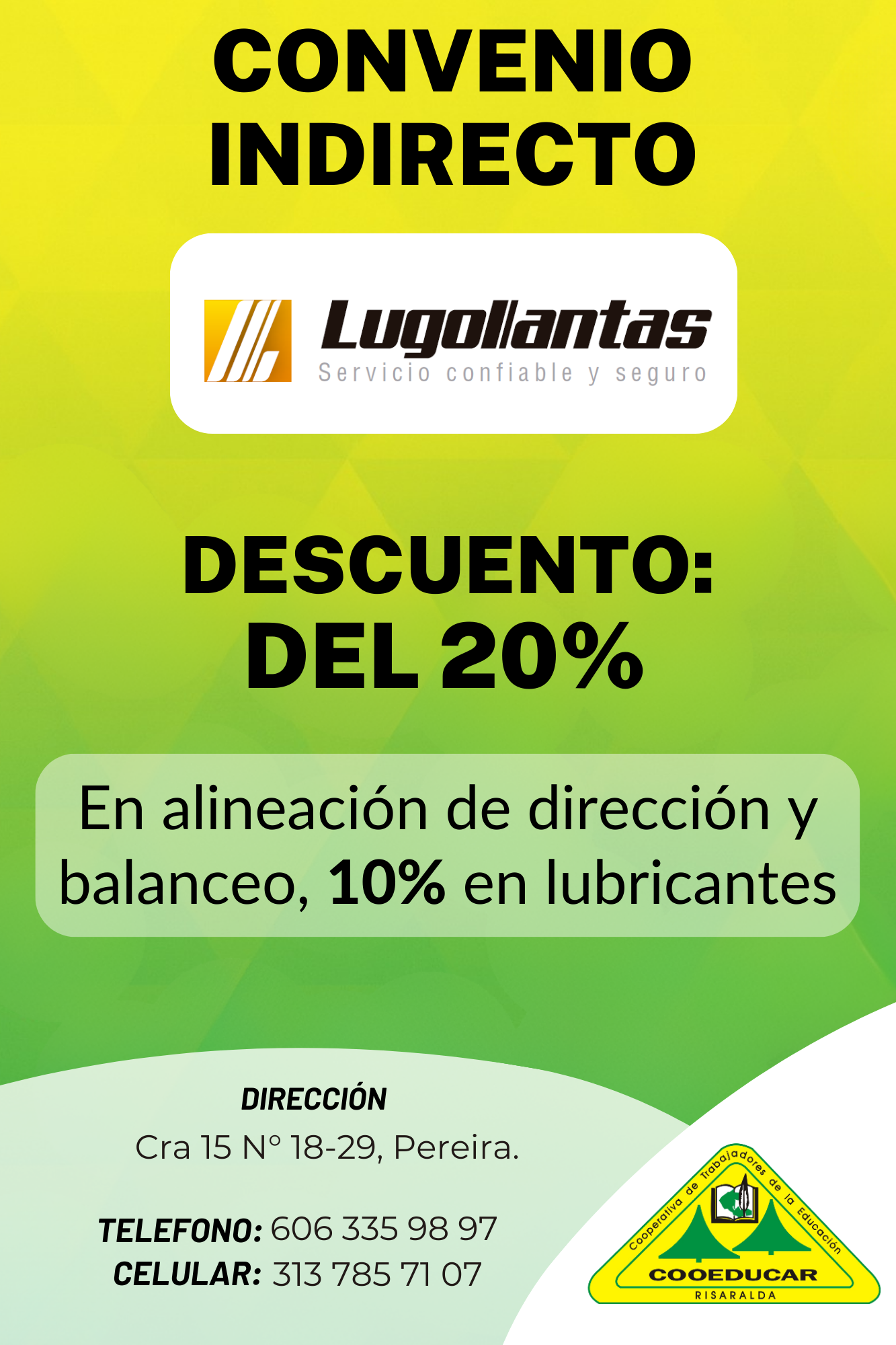 Nota: En caso de alguna reclamación sobre los servicios recibidos, debe dirigirse directamente a la entidad y enviar un reporte a la Dirección de Servicios Sociales de Cooeducar.
